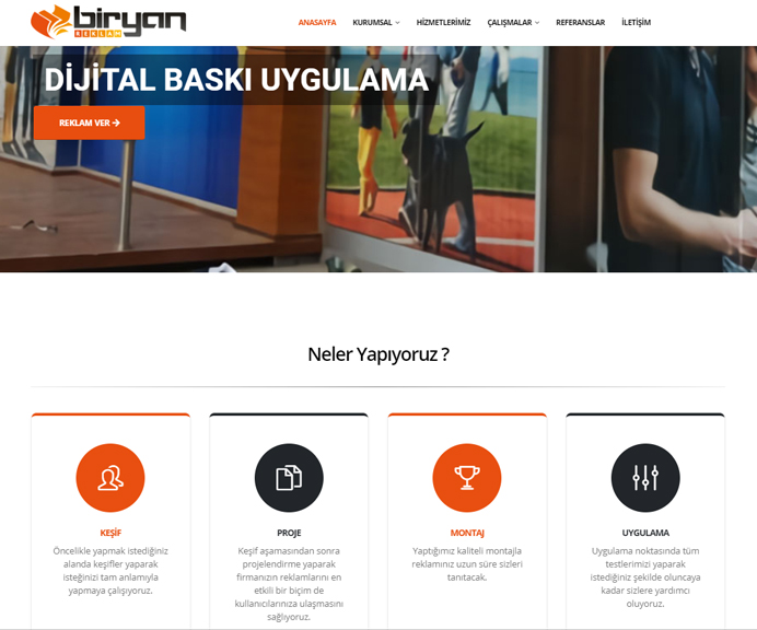 İş dünyasına, açık alan reklamcılık alanında faaliyet gösteren firmaolarak başlamıştır. Bugün Biryan Reklam faaliyette bulundukları Display Sistemler , Metal – Ahşap – PVC tabelalar ve Dijital Baskı alanlarında yenilikçi vizyonları ile bölgesinde öncü rol üstlenmektedir.
